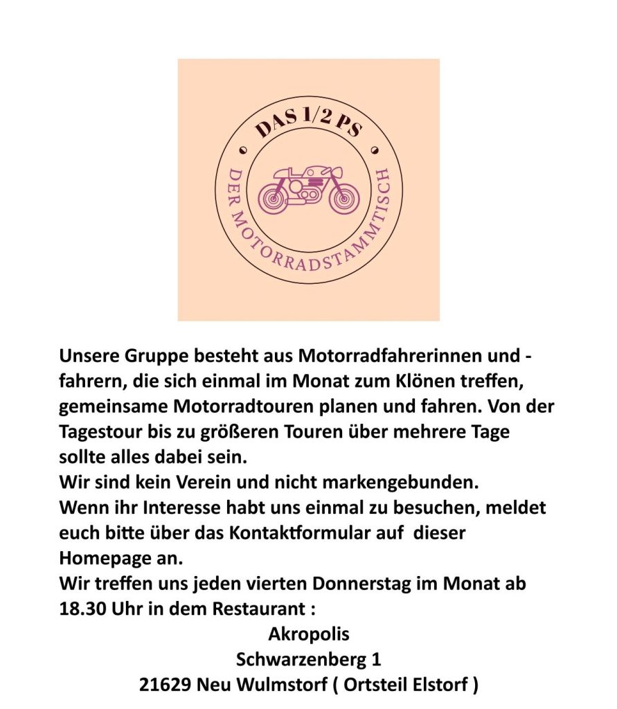 Detailinformationen über Start, Ziel, Route und Spendenzweck werden kommuniziert, sobald sie feststehen. Mitmachen kann jede(r) Motorradbegeisterte. Es kommt nicht auf die verschiedenen Marken, es kommt auf die gemeinsame Sache an. Abhängig von allen behördlichen Genehmigungen. Die Polizei begleitet die Demonstration und sorgt für eine freie Fahrt!